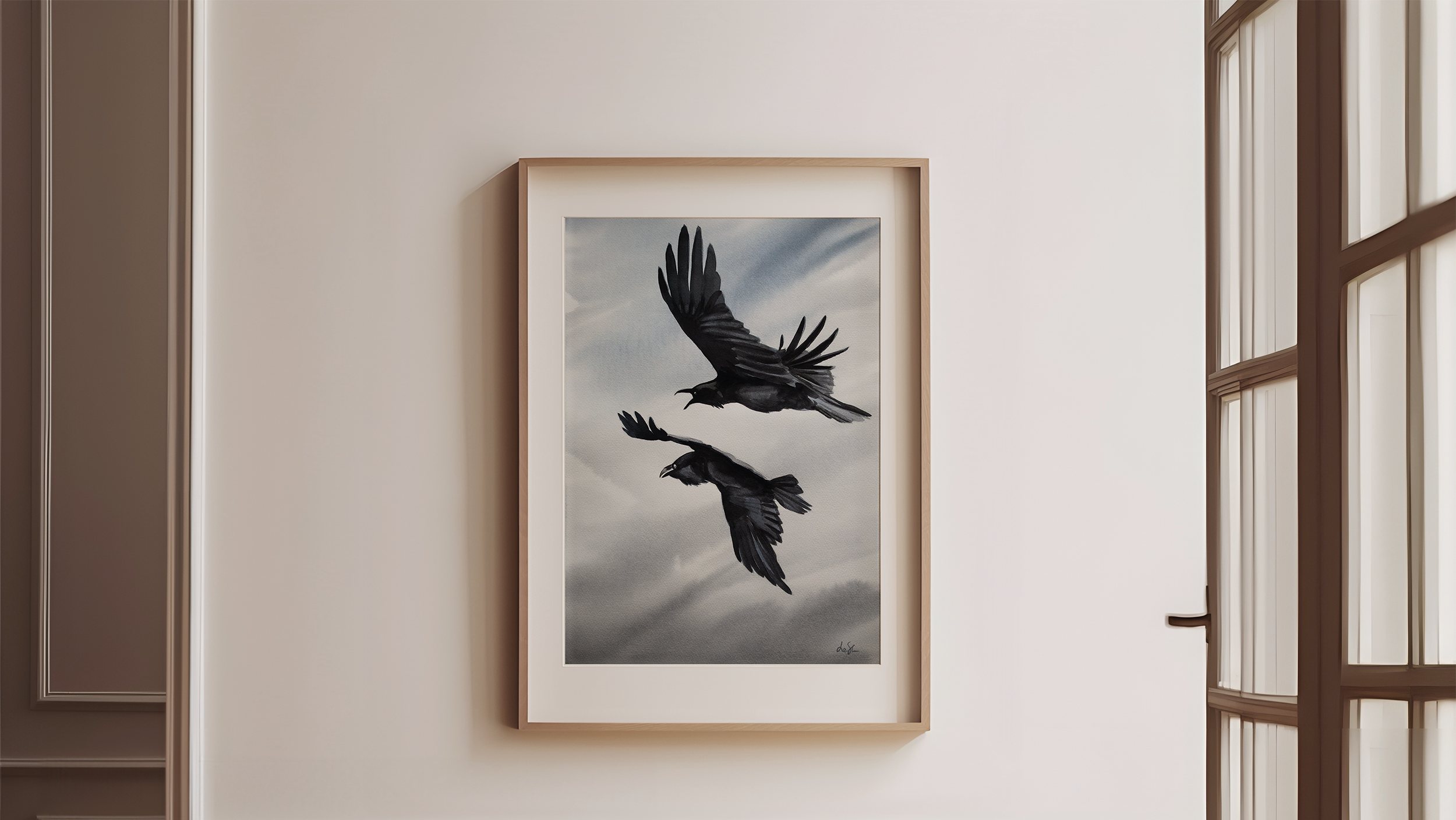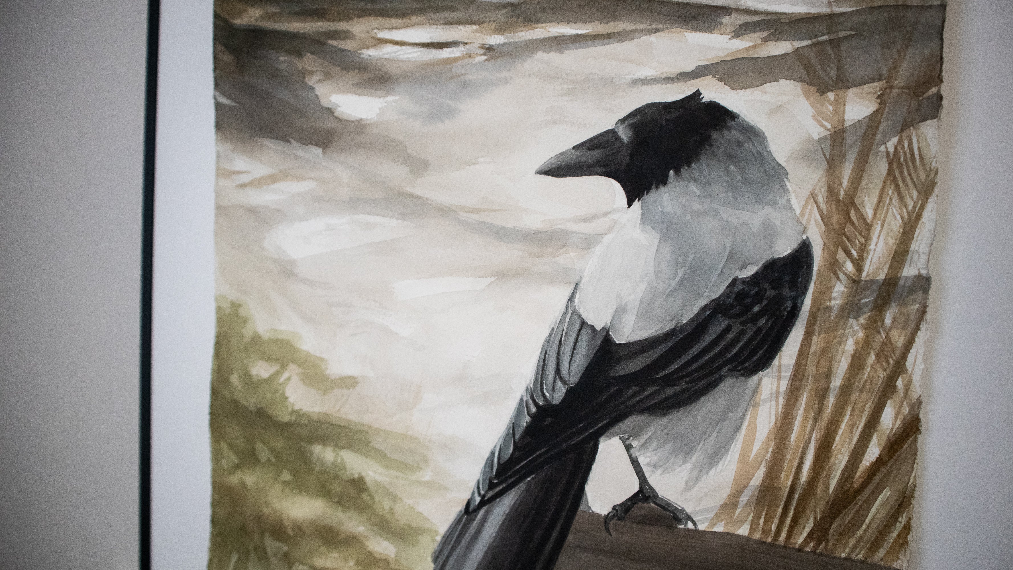 15 watercolor paintings celebrating the beauty and mystique of crows, ravens, magpies, jackdaws, and jays.