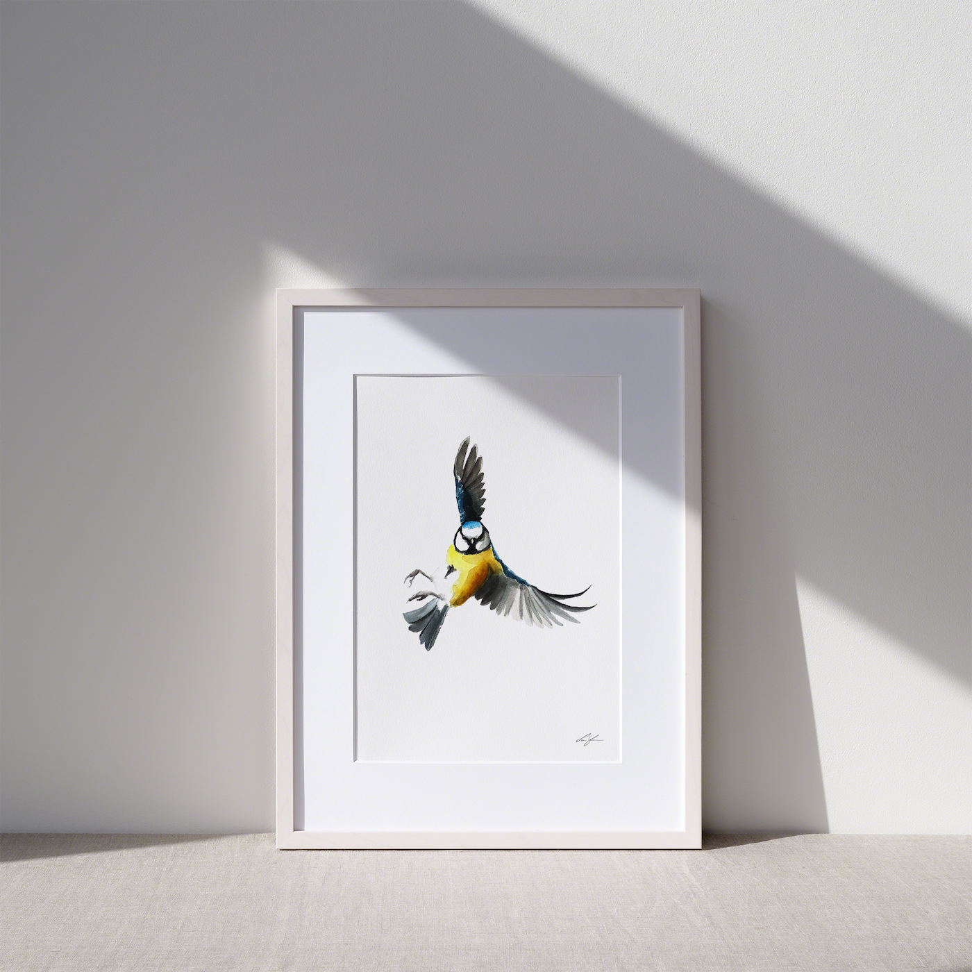 Fine art print of my watercolor painting "Blue tit 2", from the 2022 In Flight collection.
