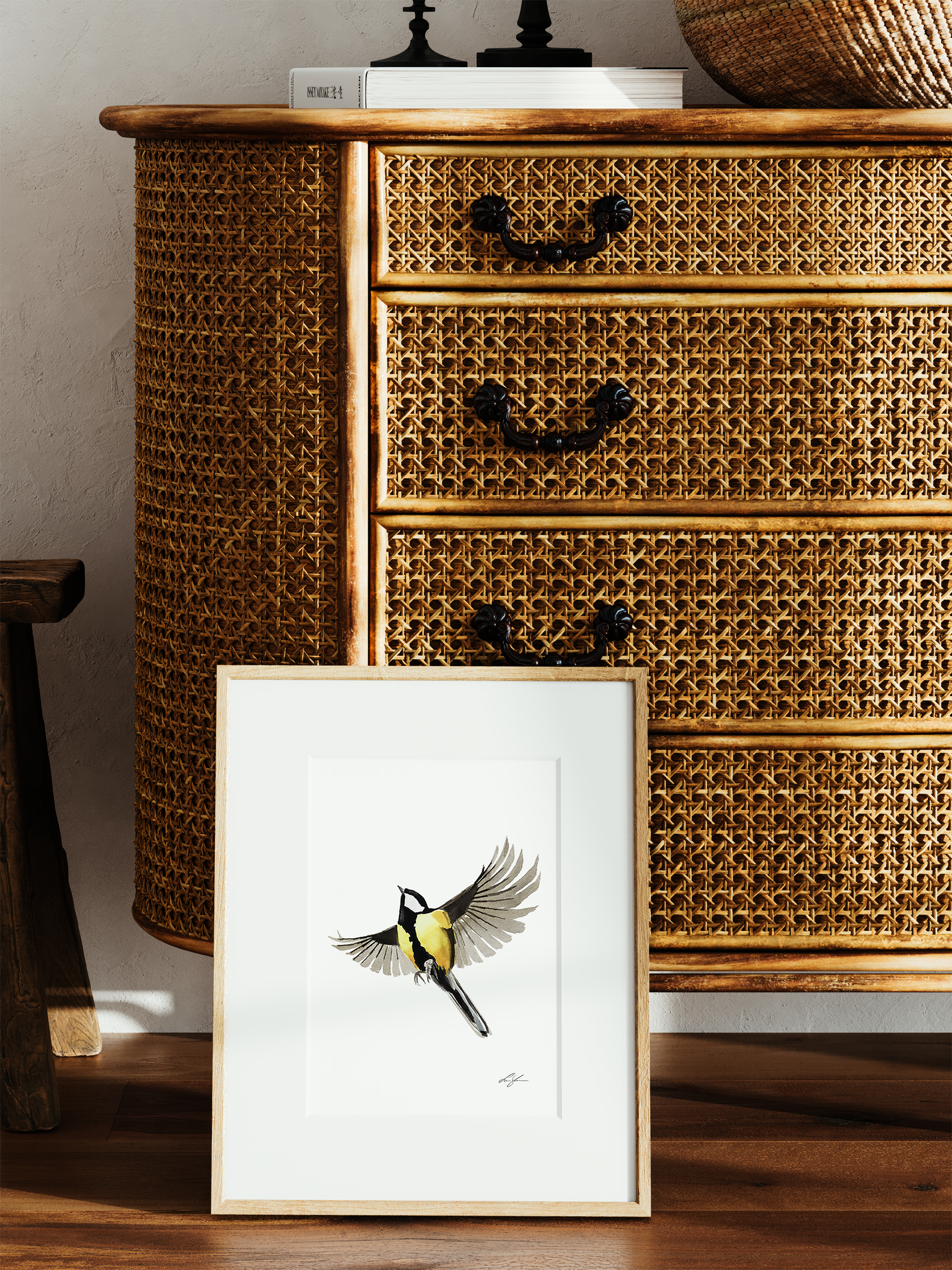 Konsttryck av min akvarellmålning "Talgoxe 1", från kollektionen Vingslag från 2022.